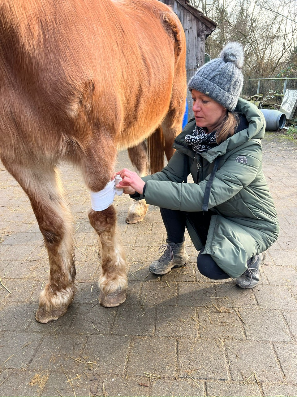 Spaziergänge, gemeinsame Zeit und das sichere Kennenlernen alltäglicher Abläufe wie Putzen, das Führen zur Koppel und in die Führanlage stehen jetzt im Vordergrund. So bekommt die junge Stute die Möglichkeit, Routinen zu lernen, Sicherheit zu gewinnen und eine stabile Beziehung zu ihrer Besitzerin aufzubauen – die beste Basis für alles Weitere. Ich bin sehr gespannt wie es weiter geht, da sie nach der zweiten Woche am Boden kommentierte, dass sie sich ja ein Reitpferd gekauft hat und kein Spazier- und bodenpferd. Diese Aussagen werden leider durch die Stallgemeinschaft verstärkt, da longieren/zentrifugieren genug Bodenarbeit ist….
